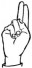 На ћирилици написано ЕВГЕНИЈЕ МИЛОВАНОВИЋ састоји се из 19 слова [?]. Исписано ћириличном једноручном азбуком за глувонеме: